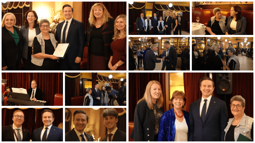 Various photos from the event, including photos of CrossCut co-founders Vincenzo Calla and RJ Fromm with Pierre Poilievre.